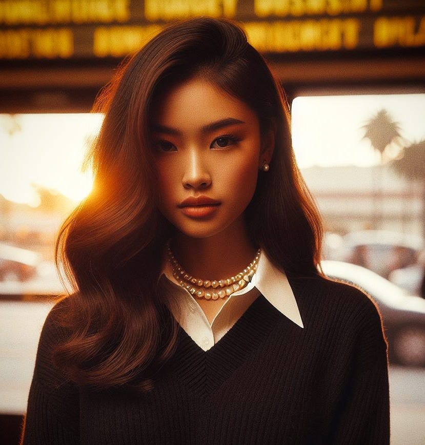 He moved aside and I saw her. His woman. A petite Asian girl, dark hair pulled back, a black and white argyle sweater with a white dress shirt underneath, small string of pearls beneath the sharp points of the collar, black slacks with a crease in the front, white socks, and penny loafers.